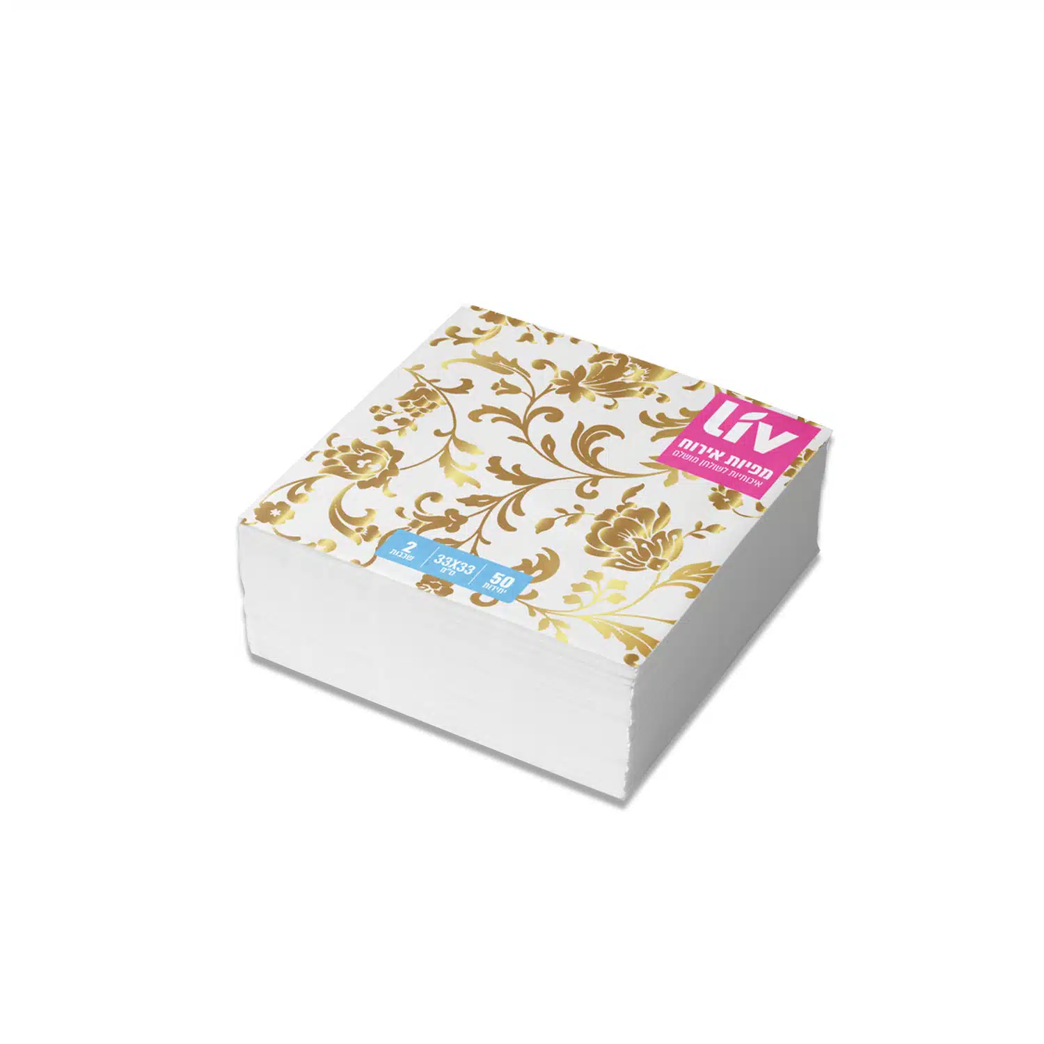 מפיות נייר הום קולקשיין זהב ליב דו שכבתי 33*33 א.50 יח'