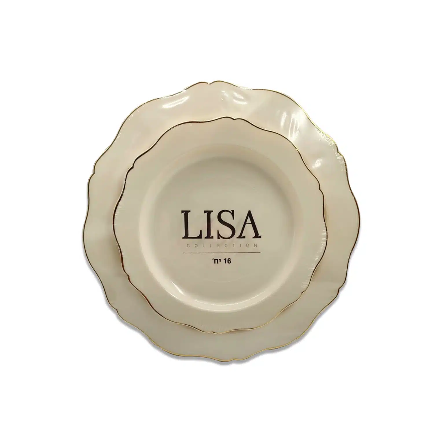 סט צלחות ליסה7"+10" קרם וזהב א. 8 יח'