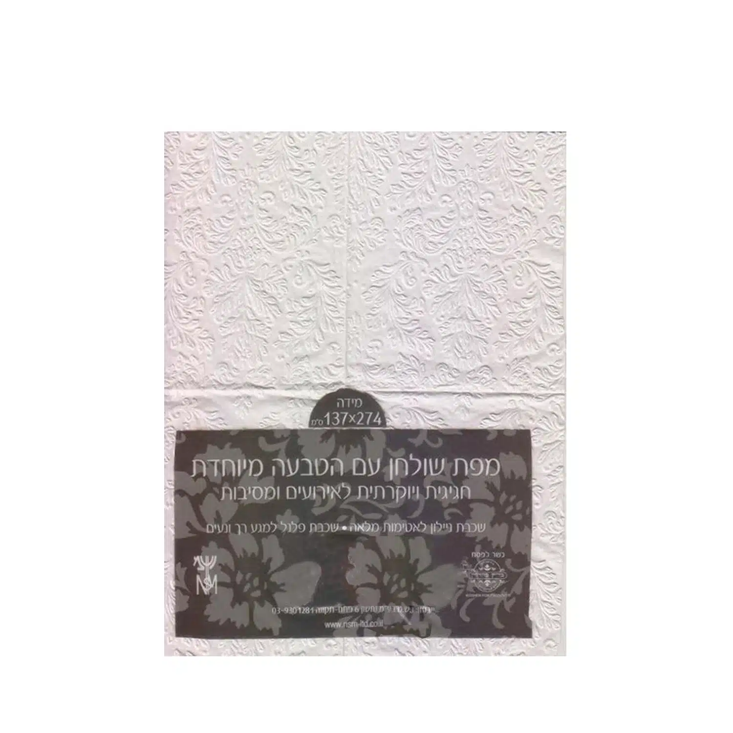 מפה טנדרלי לבן-תכלת 137*274 ס"מ