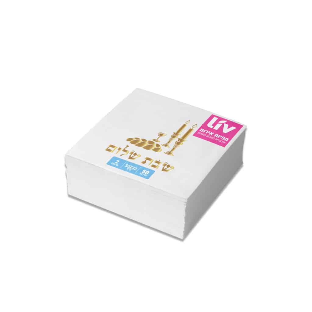 מפיות נייר שבת שלום ליב דו שכבתי 33*33 א.50 יח'